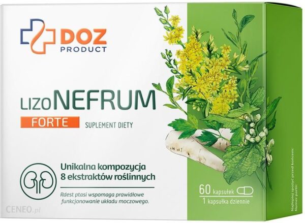 DOZ Product LizoNefrum Forte – to suplement diety z 8 ekstraktami roślinnymi. Produkt przeznaczony dla osób dorosłych.Produkt bez laktozy, bez glutenu.
