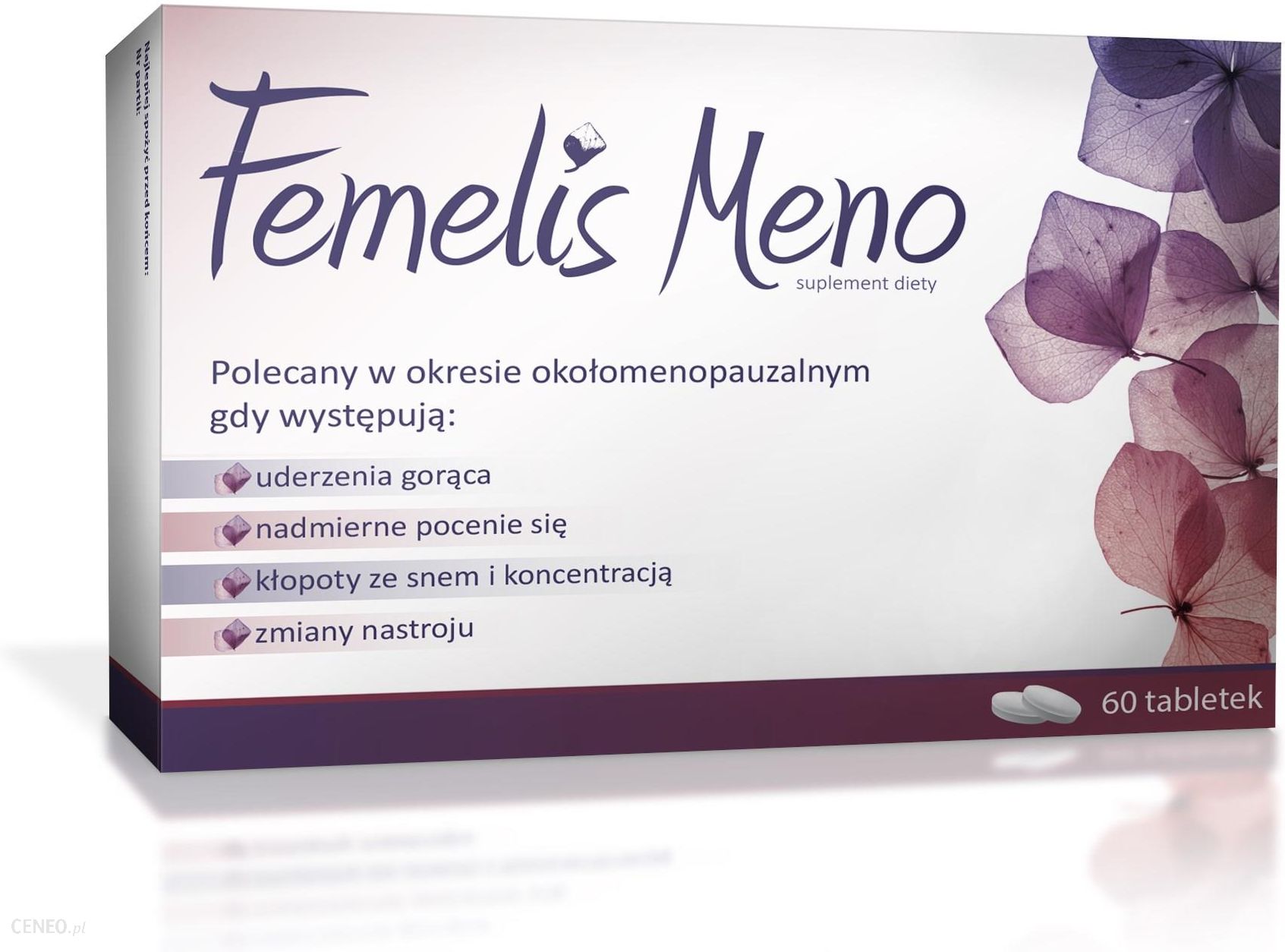 Femelis Meno to jedyny na polskim rynku niehormonalny preparat pochodzenia roślinnego dla kobiet z objawami menopauzy, takim jak np.:• uderzenia gorąca, • nadmierna potliwość,• kłopoty ze snem i koncentracją,• zmiany nastroju