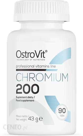 OstroVit Chrom 200 mg 90 tabletekOstroVit Chromium 200 to suplement diety w tabletkach zawierający cenny pierwiastek, jakim jest chrom. Ten mikroelement wykazuje różnorodne działanie w naszym organizmie, m.in. przyczyniając się do utrzymania prawidłowego metabolizmu mikroskładników odżywczych, pomaga w utrzymaniu prawidłowego poziomu glukozy we krwi, pomaga przyśpieszyć tempo przemiany materii czy utratę tkanki tłuszczowej.1 opakowanie zawiera 90 tabletek1 porcja = 1 tabletka90 porcji w opakowaniuWspaniały środek dla sięgających zbyt często po słodyczeChromChrom jako mikroelement jest niezbędny w naszej diecie. Można go znaleźć w śladowych ilościach w produktach roślinnych, a konkretnie w ziarnach. Chrom z uznaniem można stosować jako „złoty środek” na odchudzanie. Pomaga zwalczyć wilczy apetyt, pomaga regulować stężenie glukozy we krwi, a nawet promować lipolizę, czyli proces, który jest kluczem do zdrowej, smukłej i zadbanej sylwetki o, którą warto dbać. Chrom jest polecany sportowcom również zważywszy na fakt, iż może pomóc w utrzymaniu masy mięśniowej, a nawet zwiększeniu jej.Właściwości OstroVit ChromiumPomaga w utrzymaniu prawidłowego metabolizmu makroskładnikówMoże wspomagać utrzymaniu prawidłowego poziomu glukozyMoże promować lipolizęPomaga zahamować tzw. „wilczy głód”Przyczynia się do utrzymania tkanki mięśniowejJakość potwierdzona laboratoryjnieW trosce o zdrowie naszych klientów, produkty przez nas wytwarzane poddawane są regularnym badaniom w niezależnym akredytowanym laboratorium, w celu zapewnienia i utrzymania najwyższej jakości.Ostrovit Chromium – Badania Mikrobiologiczne 21.08.2019